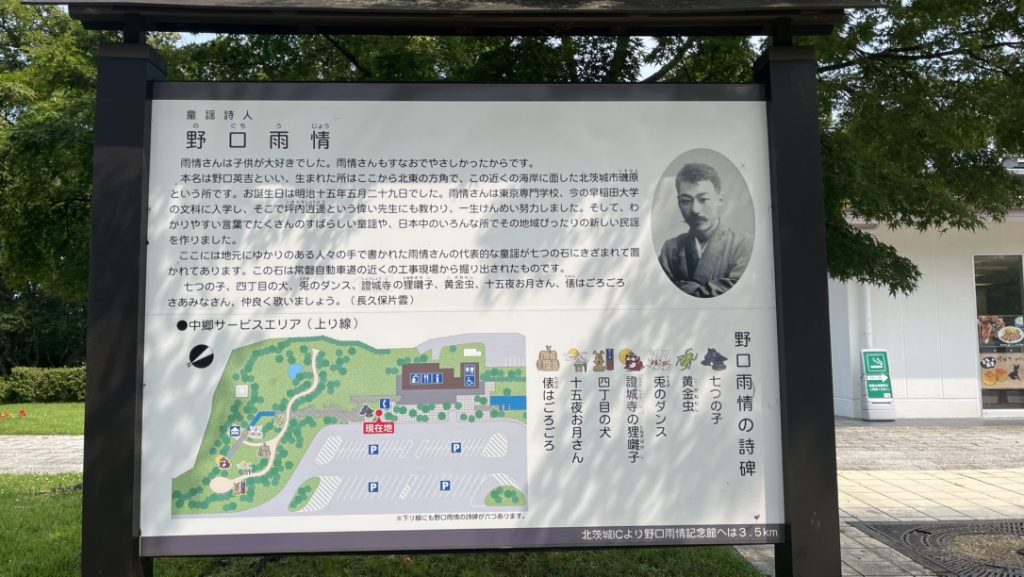 中郷SAが誇る最大の特徴は、施設に隣接して整備されている「野口雨情詩碑公園」の存在です。