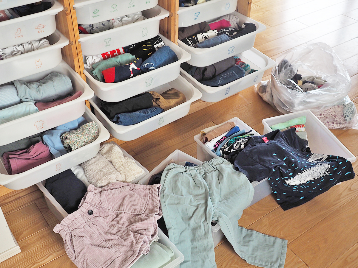 衣替え作業の最初のステップは、「出す服」と「しまう服」の選別、そして着ない服の判断です。ここで手を抜くと、収納スペースは永遠に足りません。