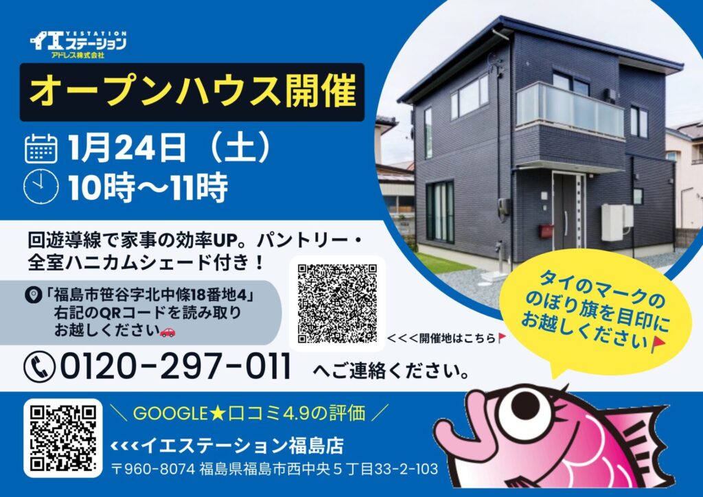 【福島市笹谷】1月オープンハウス開催のお知らせ