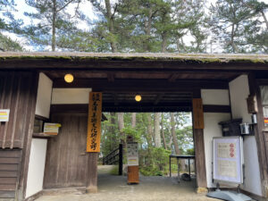 虚空蔵尊に行くと、まず見えてくるのが仁王門です。季節によっては「十三詣り」の看板が出ていることもあります。子どもが数え年13才になったら、智恵と福徳を司る虚空蔵尊菩薩に詣でるというならわしです。