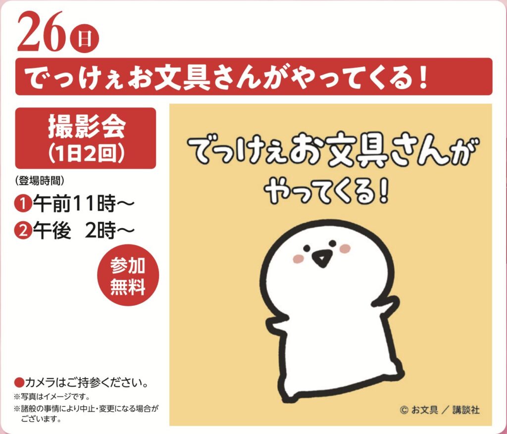SNSや動画で爆発的な人気を誇るキャラクター「お文具さん」が、大きな姿で展示場に登場します 。憧れのキャラクターと並んでポーズを決める瞬間は、最高の思い出となるでしょう 。