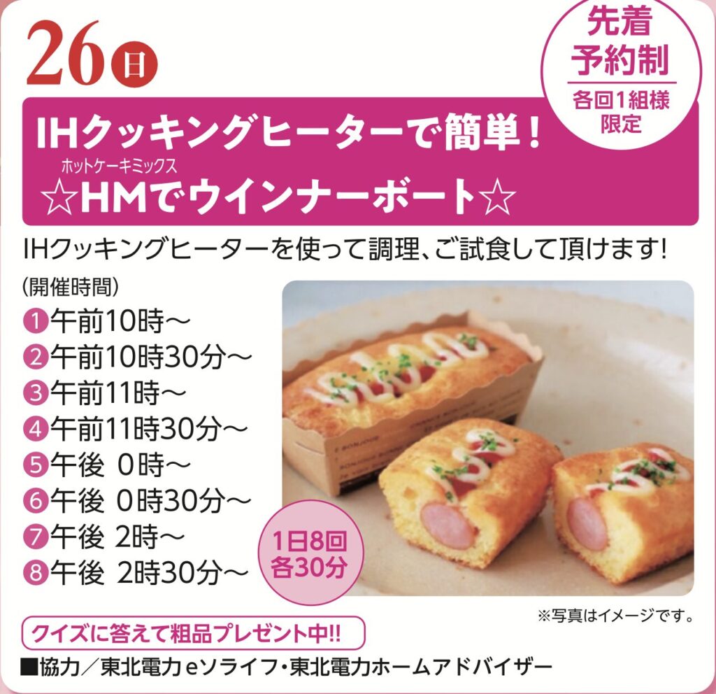 東北電力の協力により、最新のIHを使った実演会が行われます 。