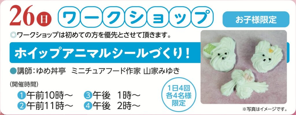 <26日>ホイップアニマルシールづくり!ワークショップ」