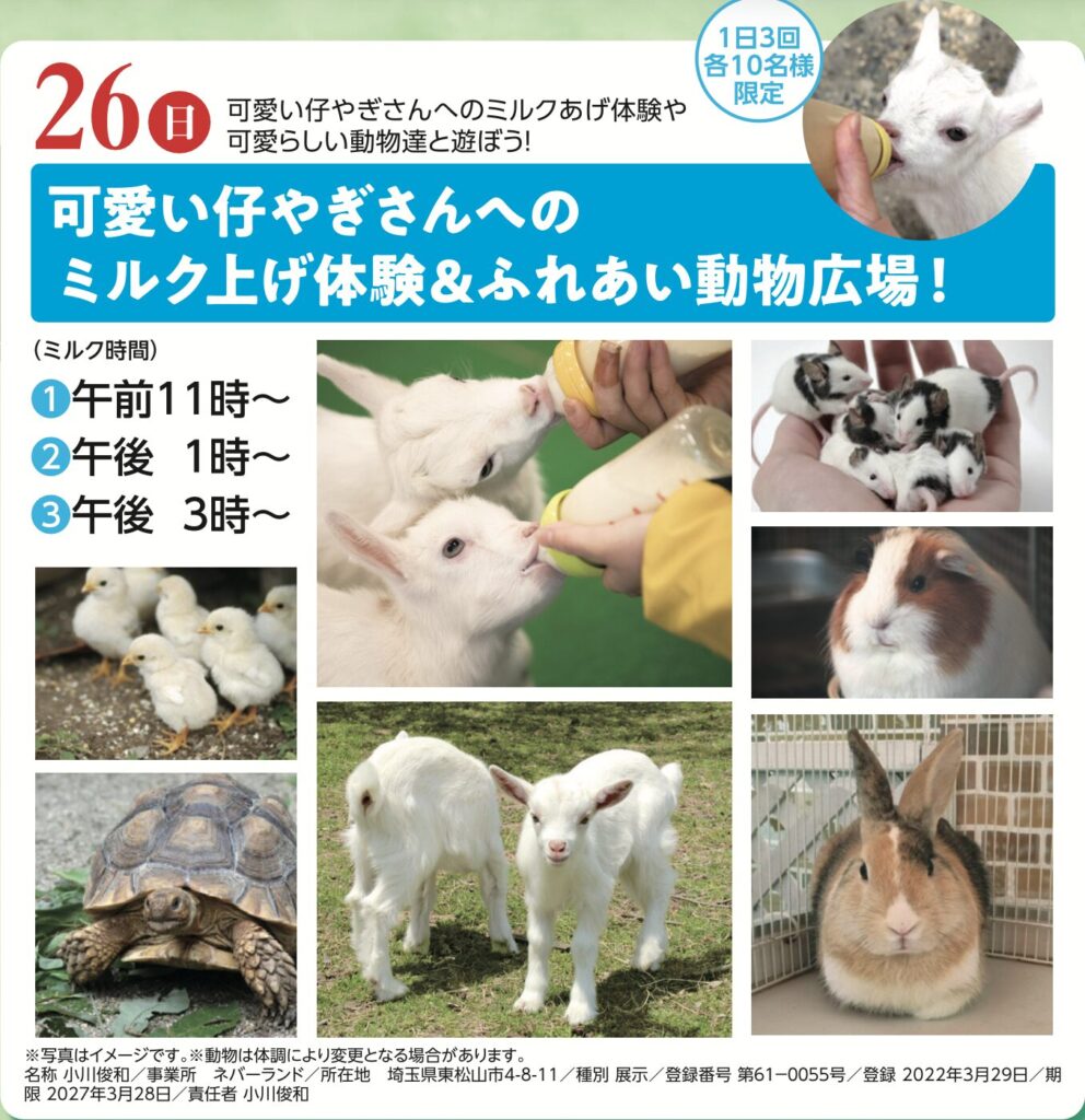 <26日>ミルクあげ体験&ふれあい動物広場!