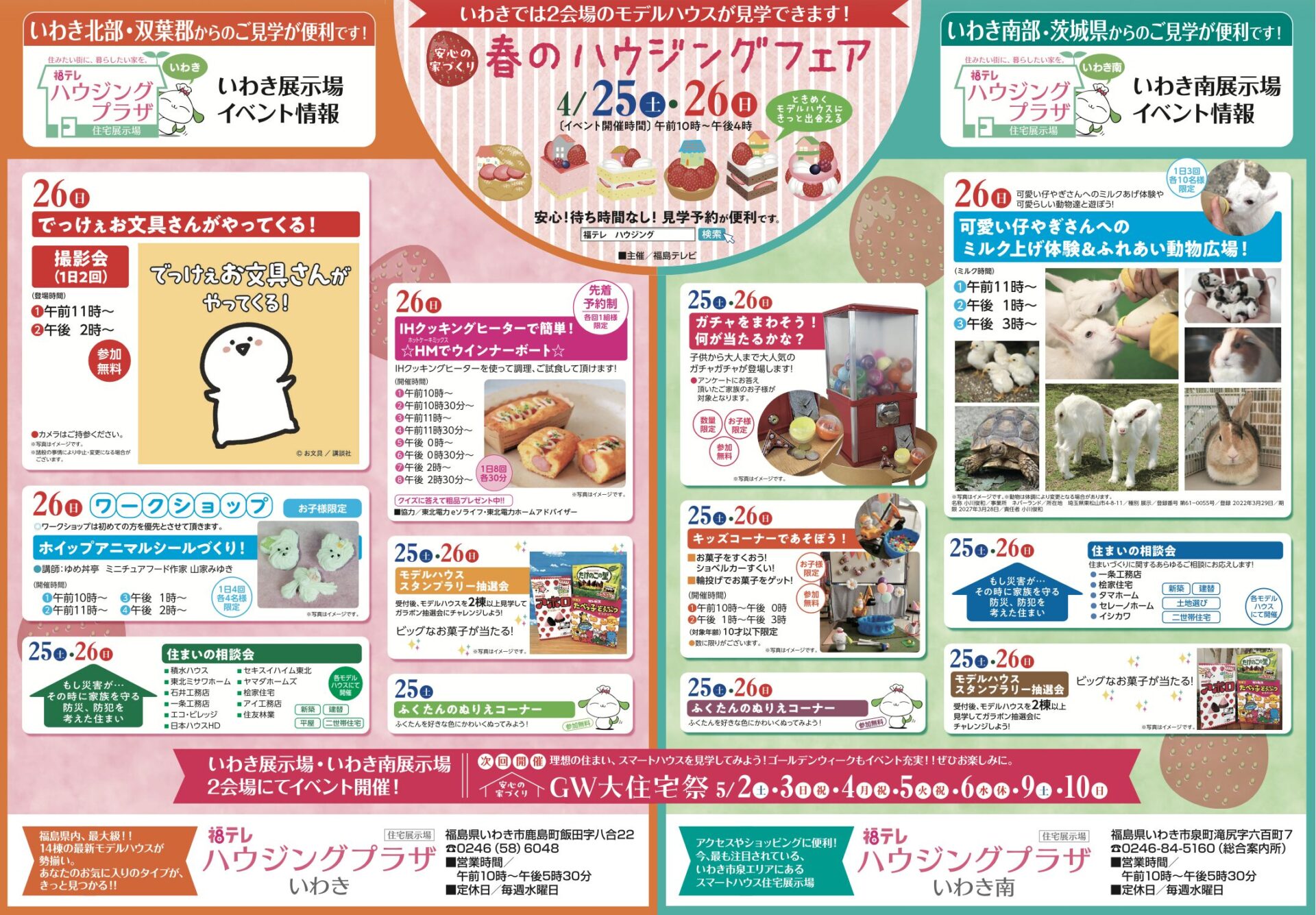 いわき北部・双葉郡からのアクセスに便利な「いわき展示場」では、家族全員が楽しめる華やかなイベントが目白押しです 。