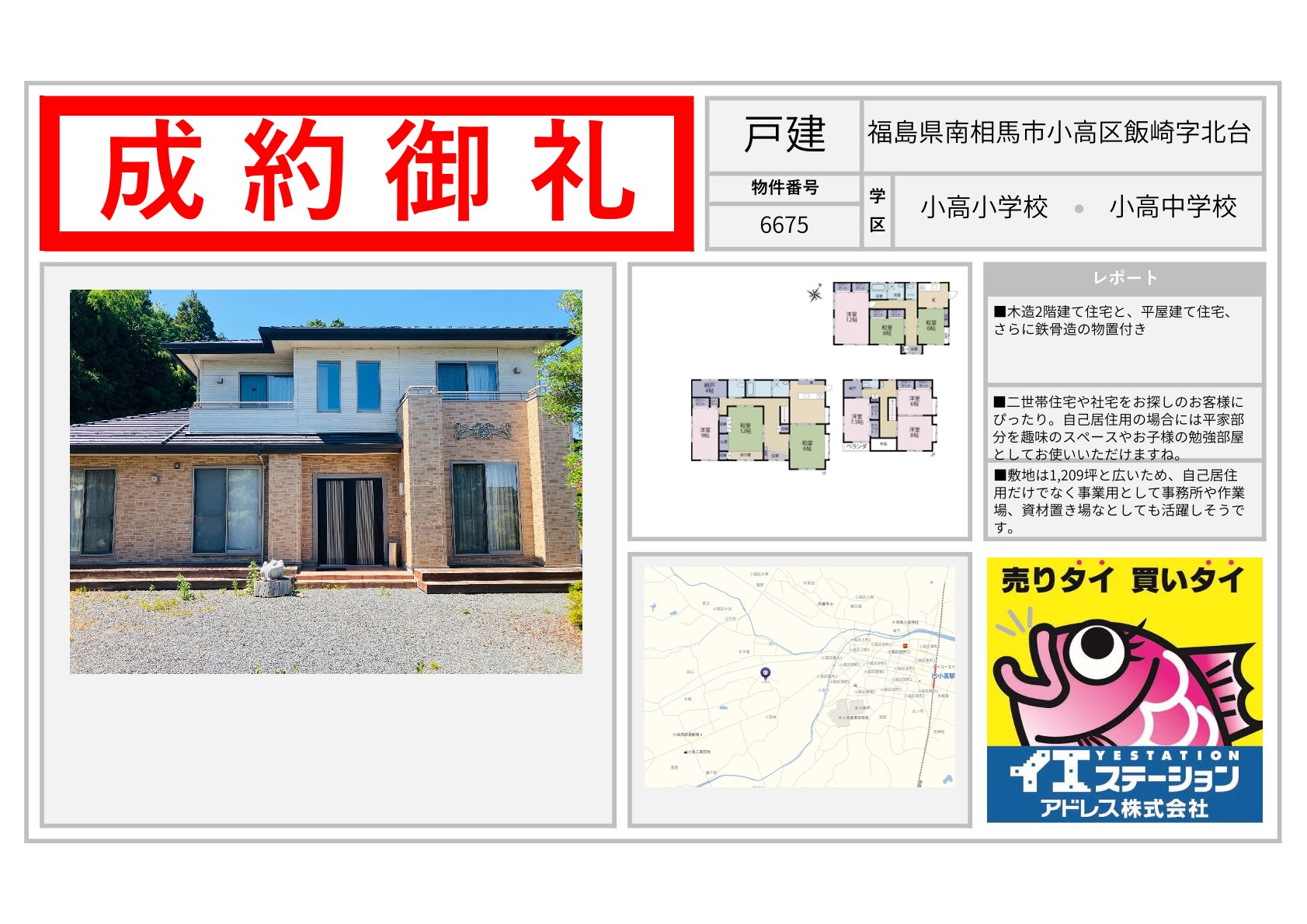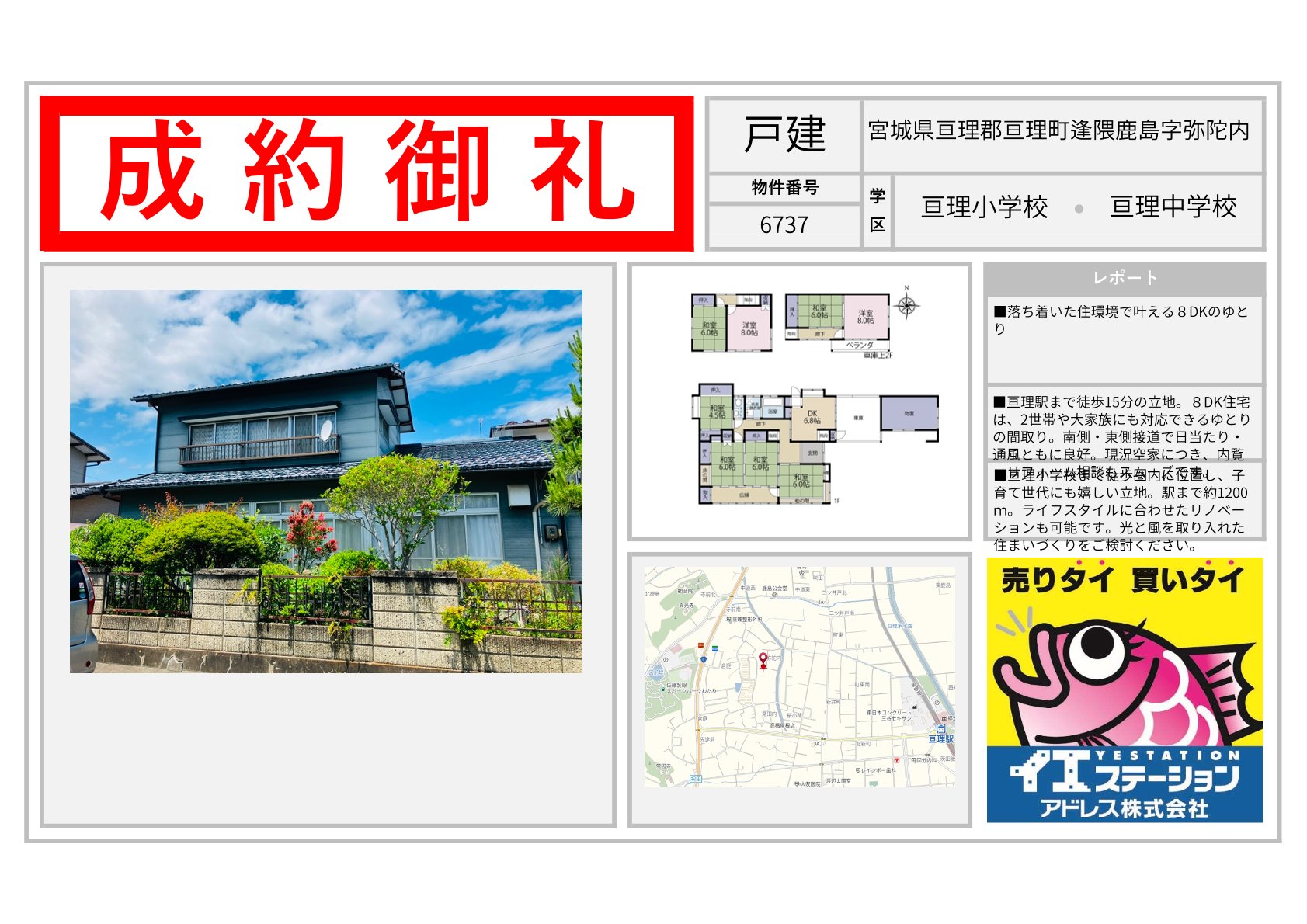 売買実績 | 不動産の売買ならイエステーションアドレス株式会社 エリアを選択 福島県 (1,128) いわき市 (592) 郡山市 (70) 田村市 (17) 田村郡 (27) 福島市 (51) 伊達市 (41) 伊達郡 (23) 二本松市 (46) 南相馬市 (53) 相馬市 (39) 会津若松市 (49) 喜多方市 (61) 耶麻郡 (17) 河沼郡 (14) 大沼郡 (5) 双葉郡 (4) 南会津郡 (1) 本宮市 (5) 相馬郡 (1) 宮城県 (719) 仙台市 (95) 名取市 (39) 岩沼市 (55) 白石市 (68) 角田市 (76) 柴田郡 (95) 亘理郡 (99) 伊具郡 (26) 塩竈市 (64) 宮城郡 (34) 東松島市 (9) 大崎市 (2) 富谷市 (3) 多賀城市 (7) 刈田郡 (11) 登米市 (1) 石巻市 (25) 遠田郡 (5) 気仙沼市 (1) 黒川郡 (1) 牡鹿郡 (1) 加美郡 (1) 茨城県 (210) 日立市 (71) 北茨城市 (40) 高萩市 (16) 那珂市 (17) ひたちなか市 (15) 常陸太田市 (32) 那珂郡 (4) 東茨城郡 (6) 常陸大宮市 (6) 山形県 (1) 山形市 (1) 2025年12月07日 福島県伊達市保原町字西町 区画8 2025年12月07日 茨城県ひたちなか市笹野町二丁目 2025年12月07日 福島県いわき市中央台飯野一丁目 2025年12月07日 宮城県柴田郡大河原町大谷字見城前 2025年12月07日 福島県喜多方市関柴町西勝字清水尻 2025年12月07日 茨城県常陸太田市大中町 2025年12月07日 宮城県亘理郡亘理町吉田字下新道 2025年12月07日 福島県いわき市常磐湯本町八仙 2025年12月07日 茨城県日立市南高野町二丁目 2025年12月07日 福島県相馬市新沼字大森 2025年12月07日 福島県南相馬市小高区飯崎字北台 2025年12月07日 宮城県亘理郡亘理町逢隈鹿島字弥陀内 1 / 172123...» 福島県の成約事例宮城県の成約事例茨城県の成約事例山形県の成約事例