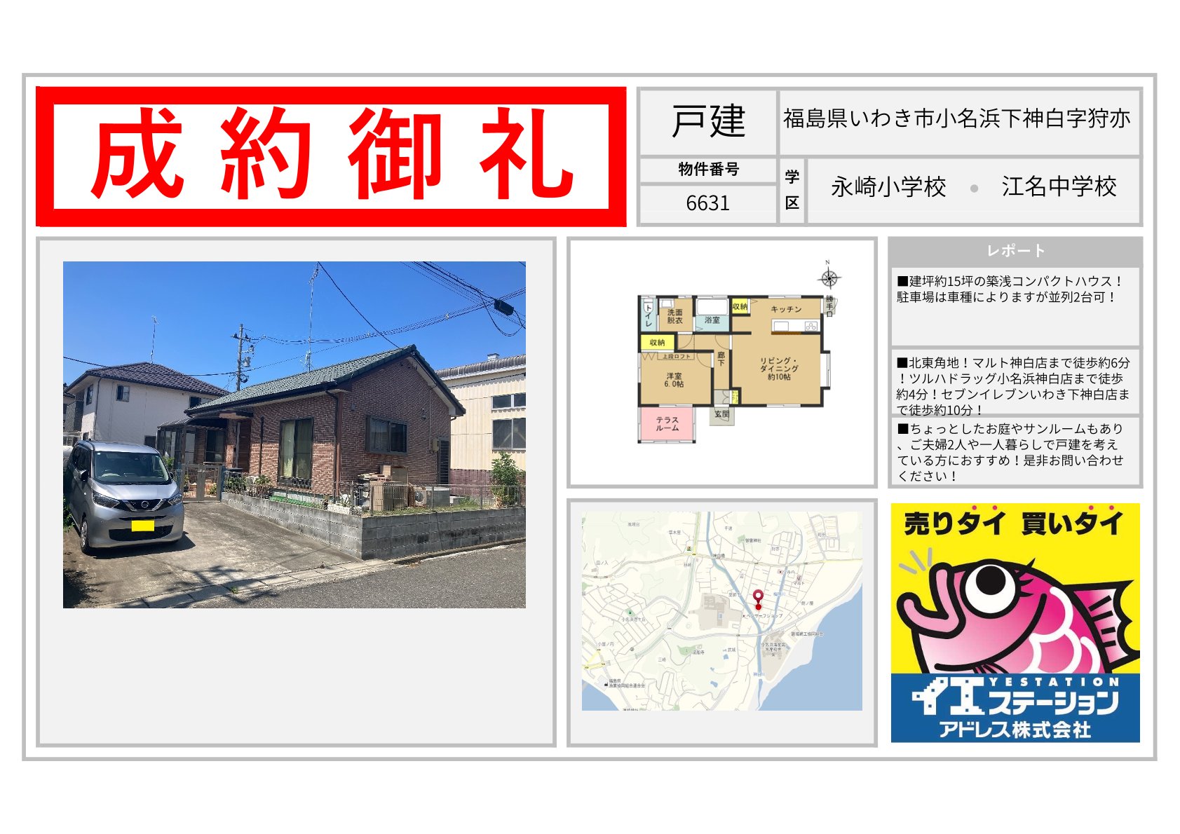 売買実績 | 不動産の売買ならイエステーションアドレス株式会社 エリアを選択 福島県 (1,159) いわき市 (606) 郡山市 (70) 田村市 (17) 田村郡 (27) 福島市 (53) 伊達市 (42) 伊達郡 (24) 二本松市 (48) 南相馬市 (55) 相馬市 (44) 会津若松市 (50) 喜多方市 (61) 耶麻郡 (18) 河沼郡 (14) 大沼郡 (6) 双葉郡 (4) 南会津郡 (1) 本宮市 (5) 相馬郡 (1) 須賀川市 (1) 宮城県 (742) 仙台市 (100) 名取市 (40) 岩沼市 (55) 白石市 (71) 角田市 (79) 柴田郡 (97) 亘理郡 (101) 伊具郡 (28) 塩竈市 (65) 宮城郡 (34) 東松島市 (10) 大崎市 (2) 富谷市 (3) 多賀城市 (7) 刈田郡 (11) 登米市 (1) 石巻市 (28) 遠田郡 (5) 気仙沼市 (1) 黒川郡 (1) 牡鹿郡 (1) 加美郡 (1) 茨城県 (221) 日立市 (76) 北茨城市 (44) 高萩市 (18) 那珂市 (17) ひたちなか市 (15) 常陸太田市 (32) 那珂郡 (4) 東茨城郡 (6) 常陸大宮市 (6) 山形県 (1) 山形市 (1) 2026年02月06日 茨城県北茨城市磯原町上相田 2026年02月06日 宮城県石巻市大街道北二丁目 2026年02月06日 宮城県角田市君萱字岩井田 2026年02月06日 宮城県亘理郡亘理町荒浜字西木倉 2026年02月06日 福島県いわき市小名浜下神白字狩亦 2026年02月06日 宮城県白石市字本町 2026年02月05日 福島県相馬市北小泉字権現前 2026年02月05日 宮城県仙台市太白区袋原六丁目 2026年02月05日 宮城県伊具郡丸森町大内字町 2026年02月05日 茨城県日立市森山町二丁目 2026年02月05日 宮城県仙台市青葉区水の森三丁目 2026年02月05日 茨城県日立市城南町一丁目 2 / 177123...» 福島県の成約事例宮城県の成約事例茨城県の成約事例山形県の成約事例