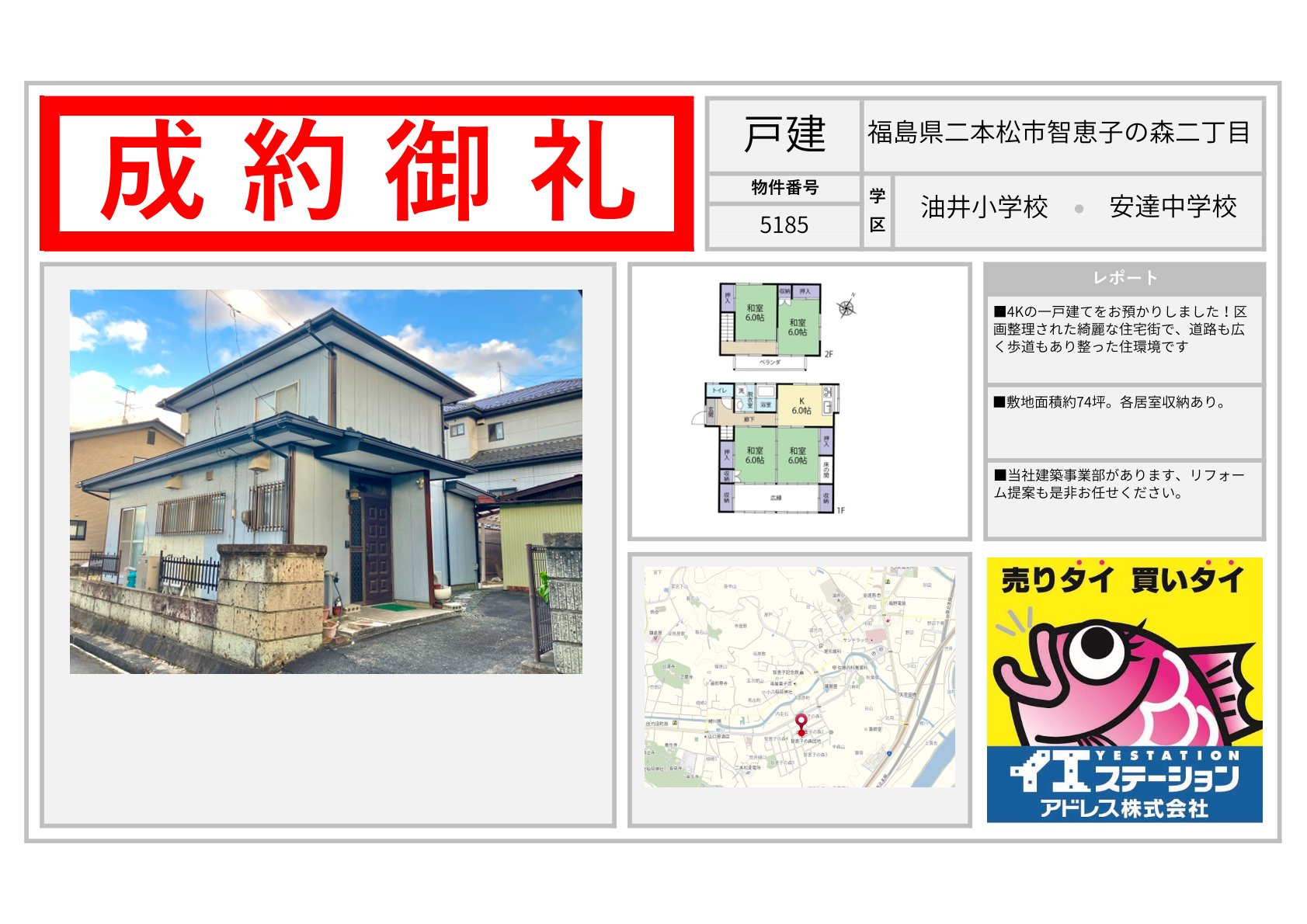 福島県 | 不動産の売買ならイエステーションアドレス株式会社 エリアを選択 福島県 (1,175) いわき市 (609) 郡山市 (73) 田村市 (17) 田村郡 (27) 福島市 (55) 伊達市 (43) 伊達郡 (24) 二本松市 (50) 南相馬市 (57) 相馬市 (45) 会津若松市 (50) 喜多方市 (62) 耶麻郡 (18) 河沼郡 (14) 大沼郡 (6) 双葉郡 (5) 南会津郡 (1) 本宮市 (5) 相馬郡 (1) 須賀川市 (1) 宮城県 (748) 仙台市 (101) 名取市 (41) 岩沼市 (56) 白石市 (71) 角田市 (79) 柴田郡 (98) 亘理郡 (101) 伊具郡 (28) 塩竈市 (65) 宮城郡 (35) 東松島市 (10) 大崎市 (2) 富谷市 (3) 多賀城市 (8) 刈田郡 (11) 登米市 (1) 石巻市 (28) 遠田郡 (5) 気仙沼市 (1) 黒川郡 (1) 牡鹿郡 (1) 加美郡 (1) 茨城県 (226) 日立市 (78) 北茨城市 (47) 高萩市 (18) 那珂市 (17) ひたちなか市 (15) 常陸太田市 (32) 那珂郡 (4) 東茨城郡 (6) 常陸大宮市 (6) 山形県 (1) 山形市 (1) 2026年03月07日 福島県福島市森合字南戸ノ内 2026年03月07日 福島県双葉郡富岡町大字小良ヶ浜字市の沢 2026年03月07日 福島県二本松市智恵子の森二丁目 2026年03月07日 福島県南相馬市原町区雫字上江 2026年03月07日 福島県相馬市富沢字藤木 2026年03月07日 福島県いわき市小名浜港ヶ丘 2026年03月07日 福島県二本松市苗松 2026年03月07日 福島県伊達市月舘町糠田字檀ノ越 2026年03月07日 福島県喜多方市字水上 2026年03月07日 福島県福島市飯野町大久保字荒屋敷 2026年03月07日 福島県南相馬市原町区大甕字鶴蒔 2026年03月07日 福島県郡山市横塚二丁目 1 / 98123...» 福島県の成約事例宮城県の成約事例茨城県の成約事例山形県の成約事例