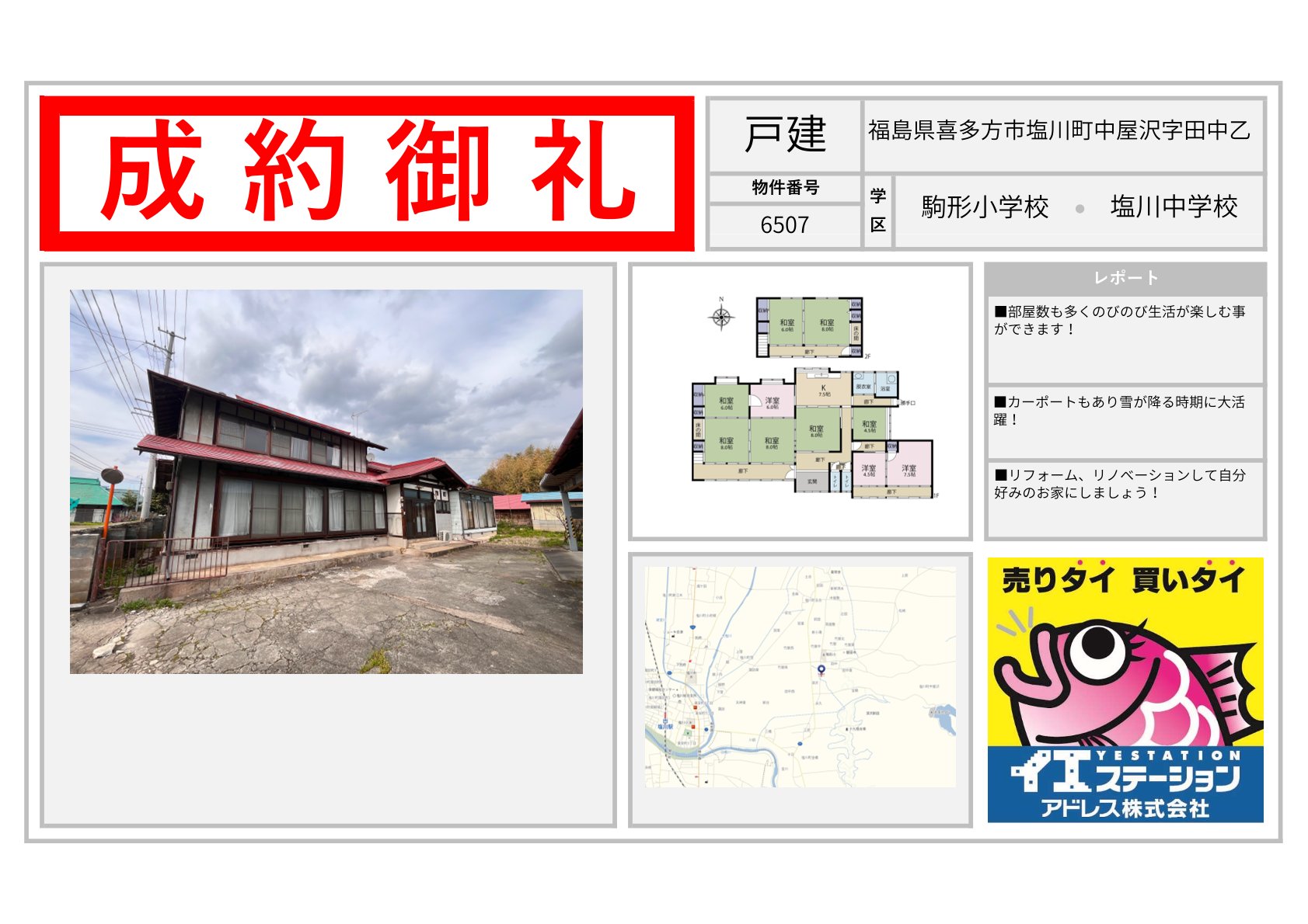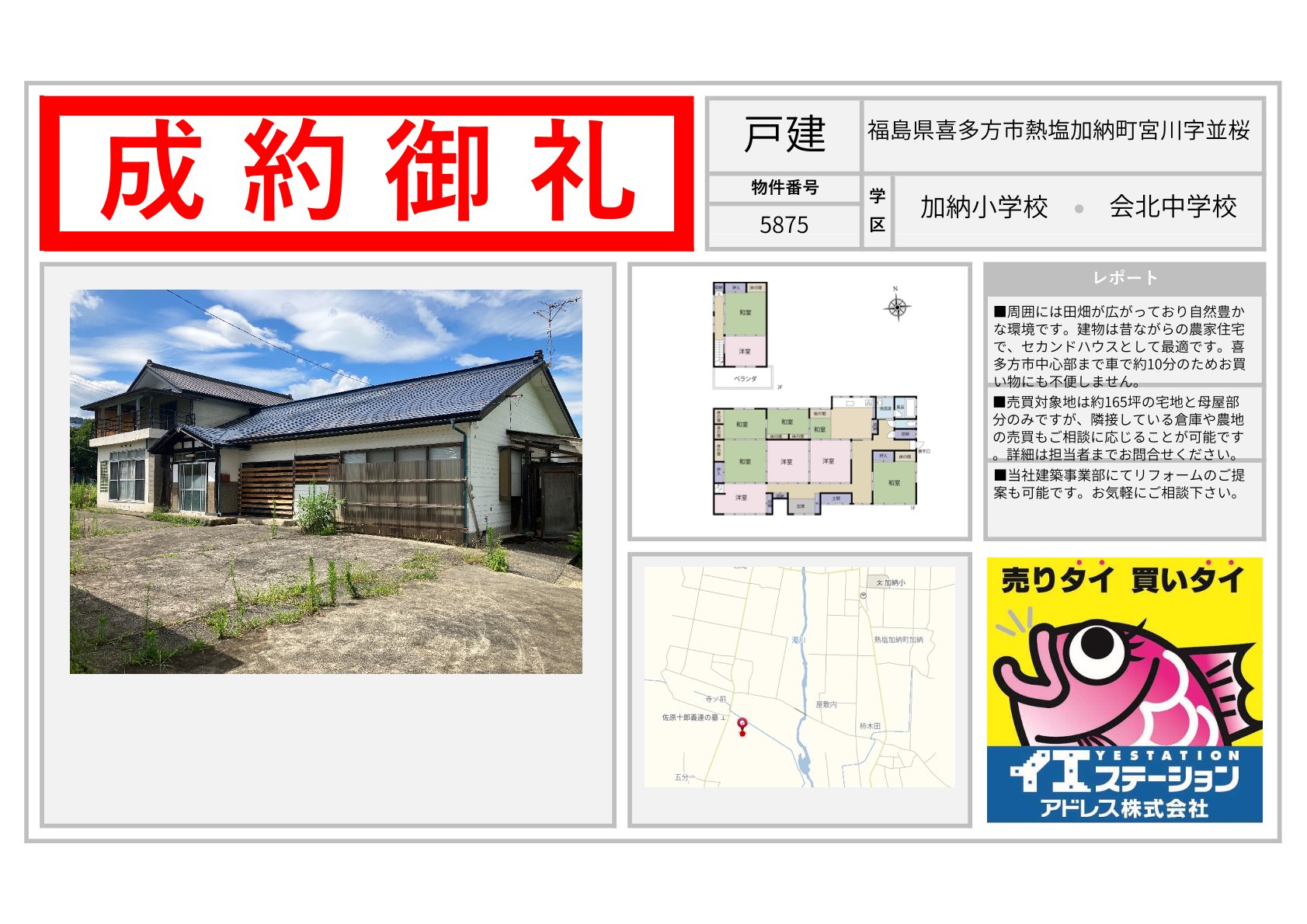 喜多方市 | 不動産の売買ならイエステーションアドレス株式会社 エリアを選択 福島県 (1,098) いわき市 (577) 郡山市 (69) 田村市 (15) 田村郡 (27) 福島市 (48) 伊達市 (37) 伊達郡 (23) 二本松市 (44) 南相馬市 (52) 相馬市 (38) 会津若松市 (49) 喜多方市 (60) 耶麻郡 (17) 河沼郡 (14) 大沼郡 (5) 双葉郡 (4) 南会津郡 (1) 本宮市 (5) 相馬郡 (1) 宮城県 (703) 仙台市 (93) 名取市 (38) 岩沼市 (55) 白石市 (66) 角田市 (73) 柴田郡 (93) 亘理郡 (97) 伊具郡 (25) 塩竈市 (64) 宮城郡 (33) 東松島市 (9) 大崎市 (2) 富谷市 (3) 多賀城市 (7) 刈田郡 (11) 登米市 (1) 石巻市 (23) 遠田郡 (5) 気仙沼市 (1) 黒川郡 (1) 牡鹿郡 (1) 加美郡 (1) 茨城県 (201) 日立市 (68) 北茨城市 (38) 高萩市 (15) 那珂市 (16) ひたちなか市 (14) 常陸太田市 (31) 那珂郡 (4) 東茨城郡 (6) 常陸大宮市 (6) 山形県 (1) 山形市 (1) 2025年10月08日 福島県喜多方市熱塩加納町宮川字並桜 2025年10月08日 福島県喜多方市塩川町中屋沢字田中乙 2025年09月09日 福島県喜多方市熱塩加納町宮川字並桜 2025年09月09日 福島県喜多方市字通船場 2025年08月08日 福島県喜多方市字一丁目 2025年07月09日 福島県喜多方市上三宮町上三宮字切境 2025年07月09日 福島県喜多方市高郷町峯字漆窪 2025年07月09日 福島県喜多方市字清水が丘一丁目 2025年07月09日 福島県喜多方市高郷町西羽賀字西羽賀 2025年06月09日 福島県喜多方市字花園 2025年04月06日 福島県喜多方市豊川町米室字車地蔵 2025年01月04日 福島県喜多方市熊倉町都字高柳乙 1 / 5123...» 福島県の成約事例宮城県の成約事例茨城県の成約事例山形県の成約事例