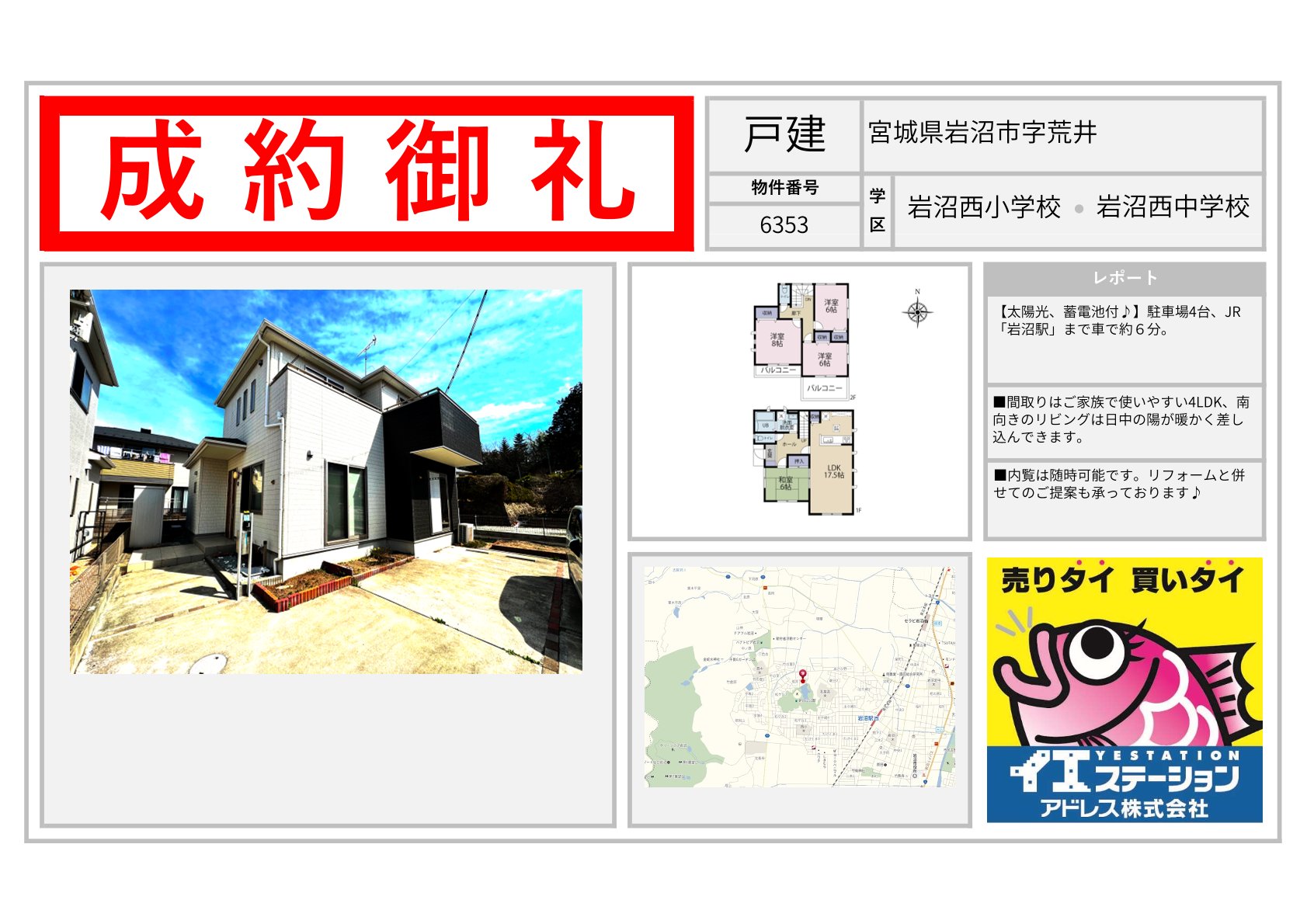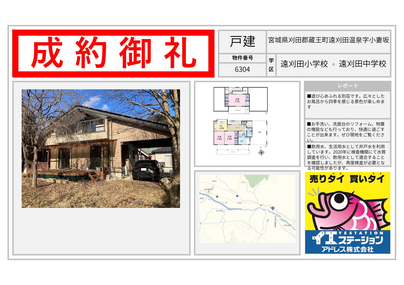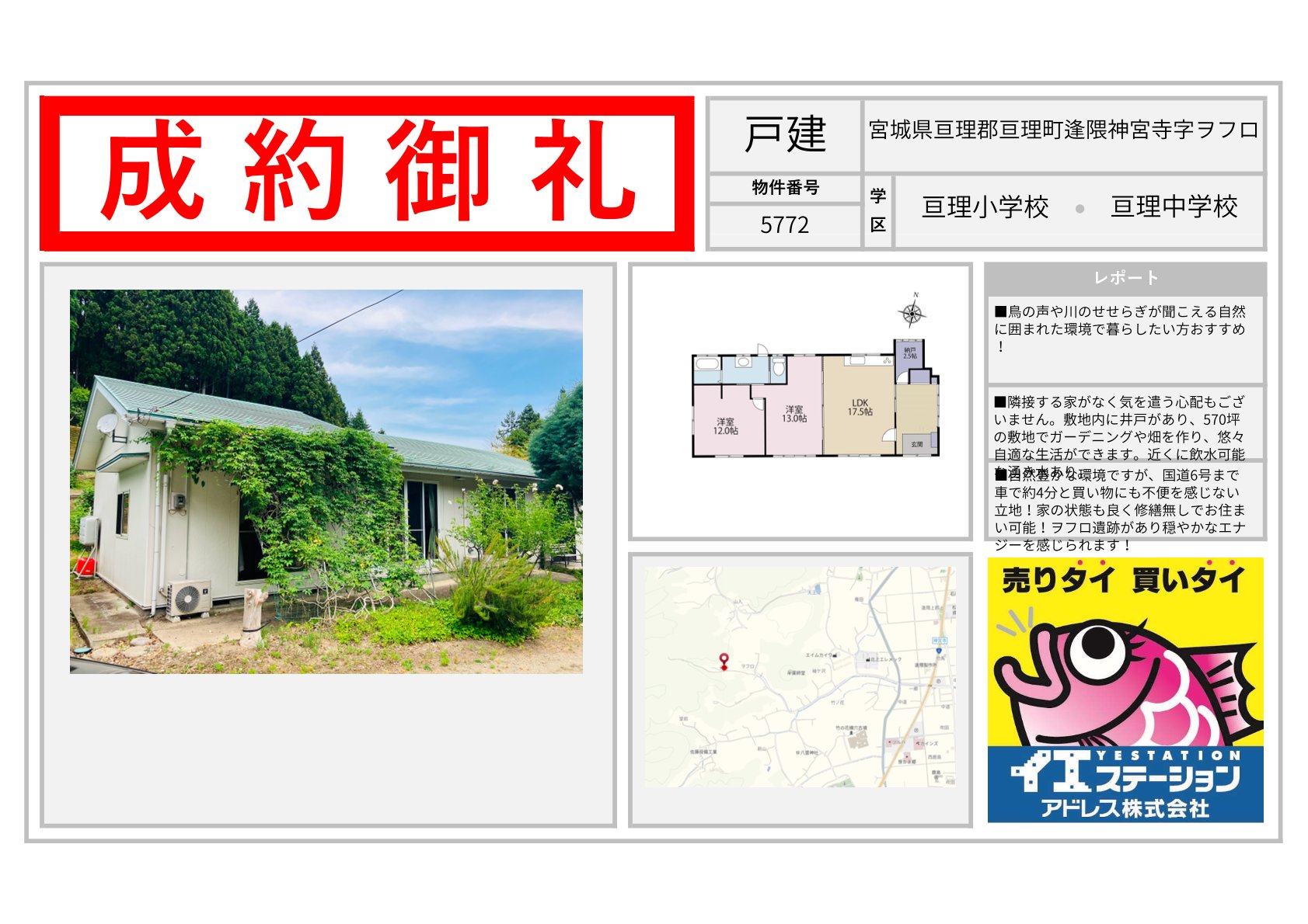 宮城県 | 不動産の売買ならイエステーションアドレス株式会社 エリアを選択 福島県 (1,098) いわき市 (577) 郡山市 (69) 田村市 (15) 田村郡 (27) 福島市 (48) 伊達市 (37) 伊達郡 (23) 二本松市 (44) 南相馬市 (52) 相馬市 (38) 会津若松市 (49) 喜多方市 (60) 耶麻郡 (17) 河沼郡 (14) 大沼郡 (5) 双葉郡 (4) 南会津郡 (1) 本宮市 (5) 相馬郡 (1) 宮城県 (703) 仙台市 (93) 名取市 (38) 岩沼市 (55) 白石市 (66) 角田市 (73) 柴田郡 (93) 亘理郡 (97) 伊具郡 (25) 塩竈市 (64) 宮城郡 (33) 東松島市 (9) 大崎市 (2) 富谷市 (3) 多賀城市 (7) 刈田郡 (11) 登米市 (1) 石巻市 (23) 遠田郡 (5) 気仙沼市 (1) 黒川郡 (1) 牡鹿郡 (1) 加美郡 (1) 茨城県 (201) 日立市 (68) 北茨城市 (38) 高萩市 (15) 那珂市 (16) ひたちなか市 (14) 常陸太田市 (31) 那珂郡 (4) 東茨城郡 (6) 常陸大宮市 (6) 山形県 (1) 山形市 (1) 2025年10月09日 宮城県仙台市太白区四郎丸字吹上 2025年10月09日 宮城県伊具郡丸森町小斎字八守 2025年10月09日 宮城県白石市字柳町 2025年10月09日 宮城県遠田郡涌谷町涌谷坂下浦 2025年10月09日 宮城県岩沼市二木二丁目 2025年10月09日 宮城県遠田郡涌谷町涌谷字内作田一 2025年10月08日 宮城県亘理郡亘理町逢隈神宮寺字ヲフロ 2025年10月08日 宮城県亘理郡亘理町長瀞字堂前 2025年10月08日 宮城県刈田郡蔵王町遠刈田温泉字小妻坂 2025年10月08日 宮城県岩沼市字荒井 2025年10月08日 宮城県塩竈市清水沢二丁目 2025年10月08日 宮城県伊具郡丸森町小斎字小佐田 1 / 59123...» 福島県の成約事例宮城県の成約事例茨城県の成約事例山形県の成約事例