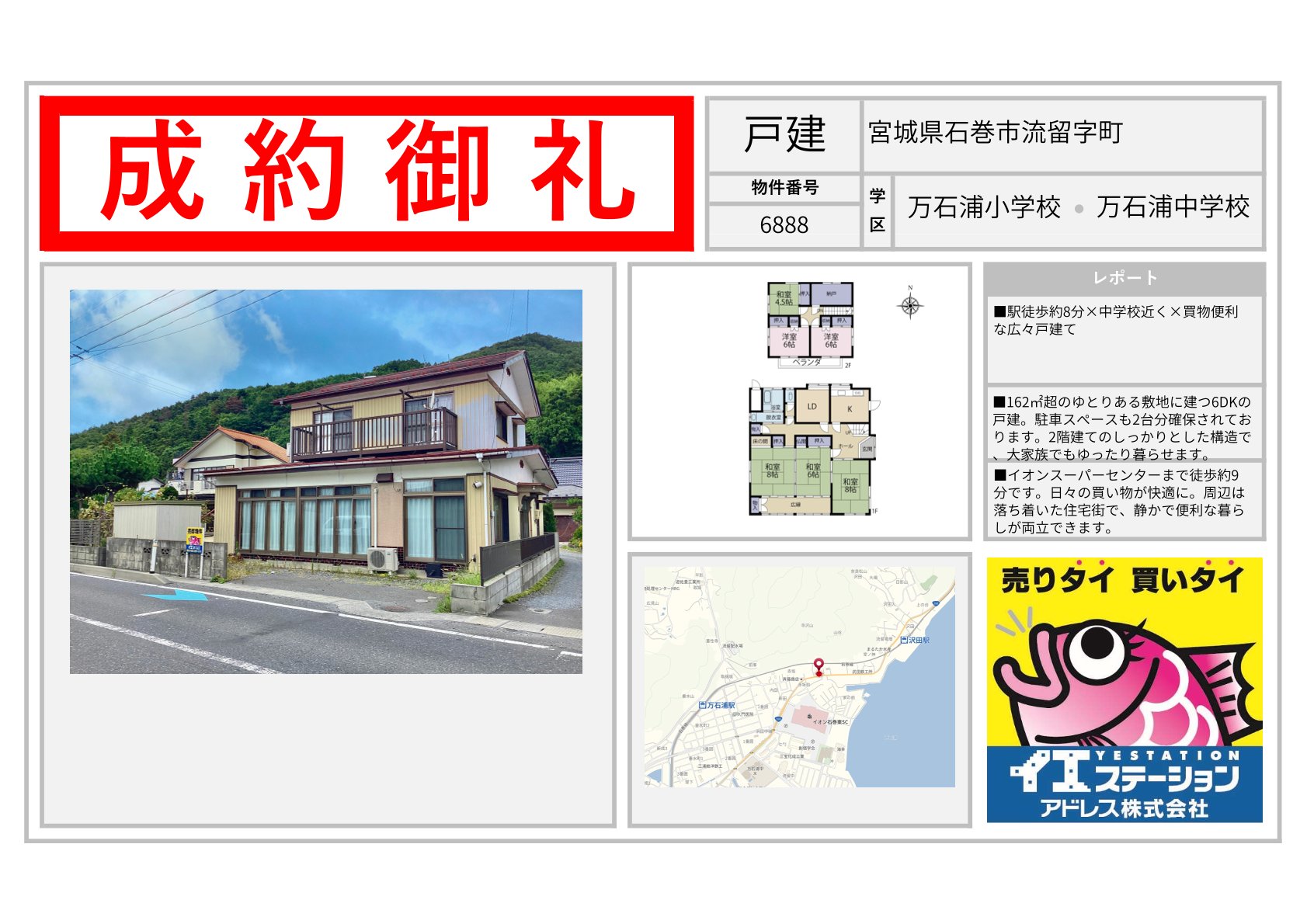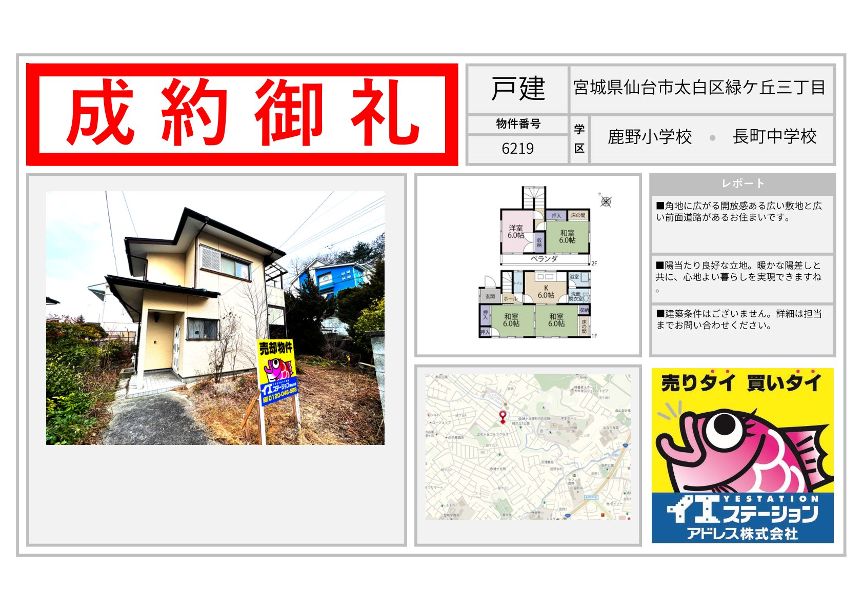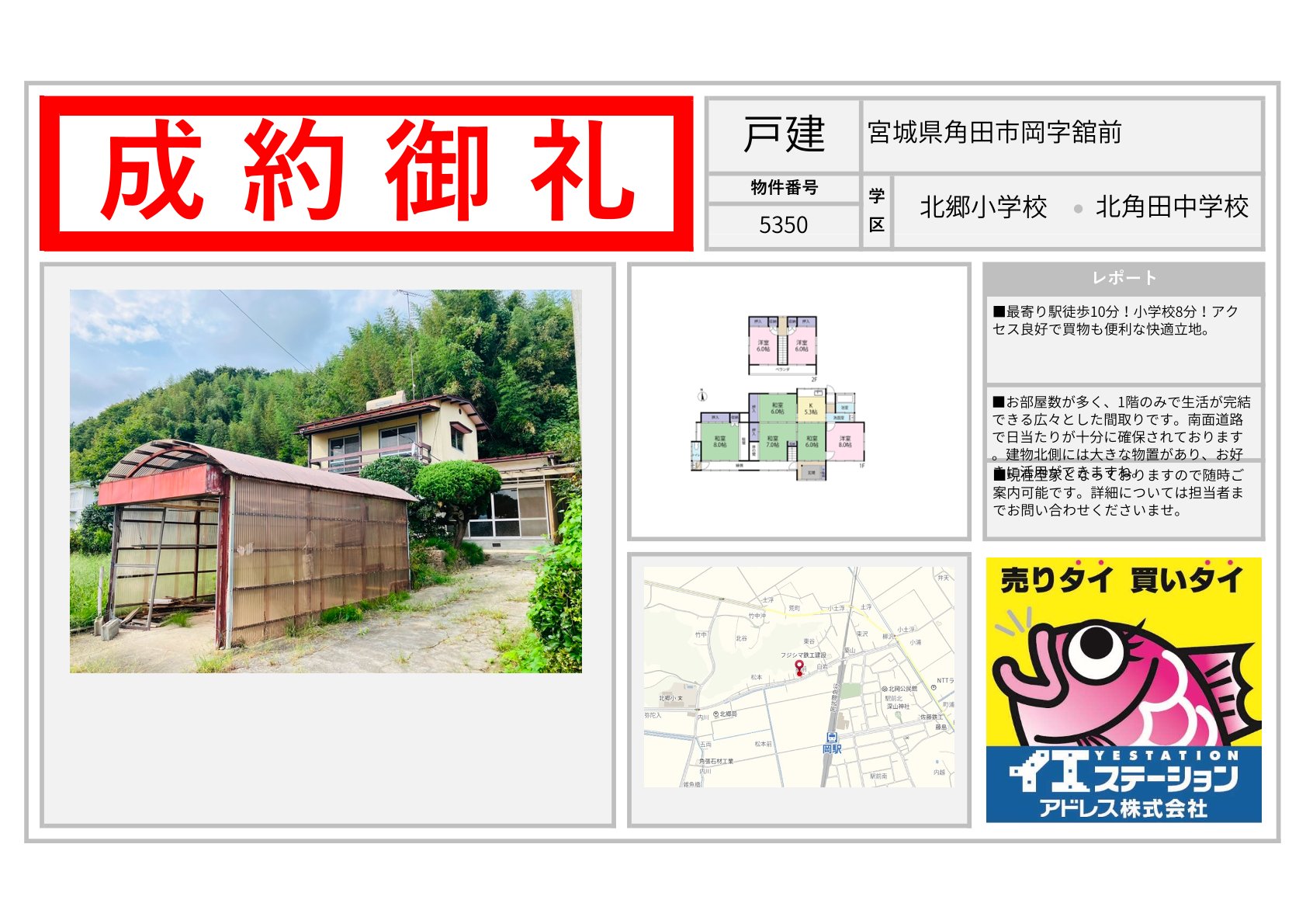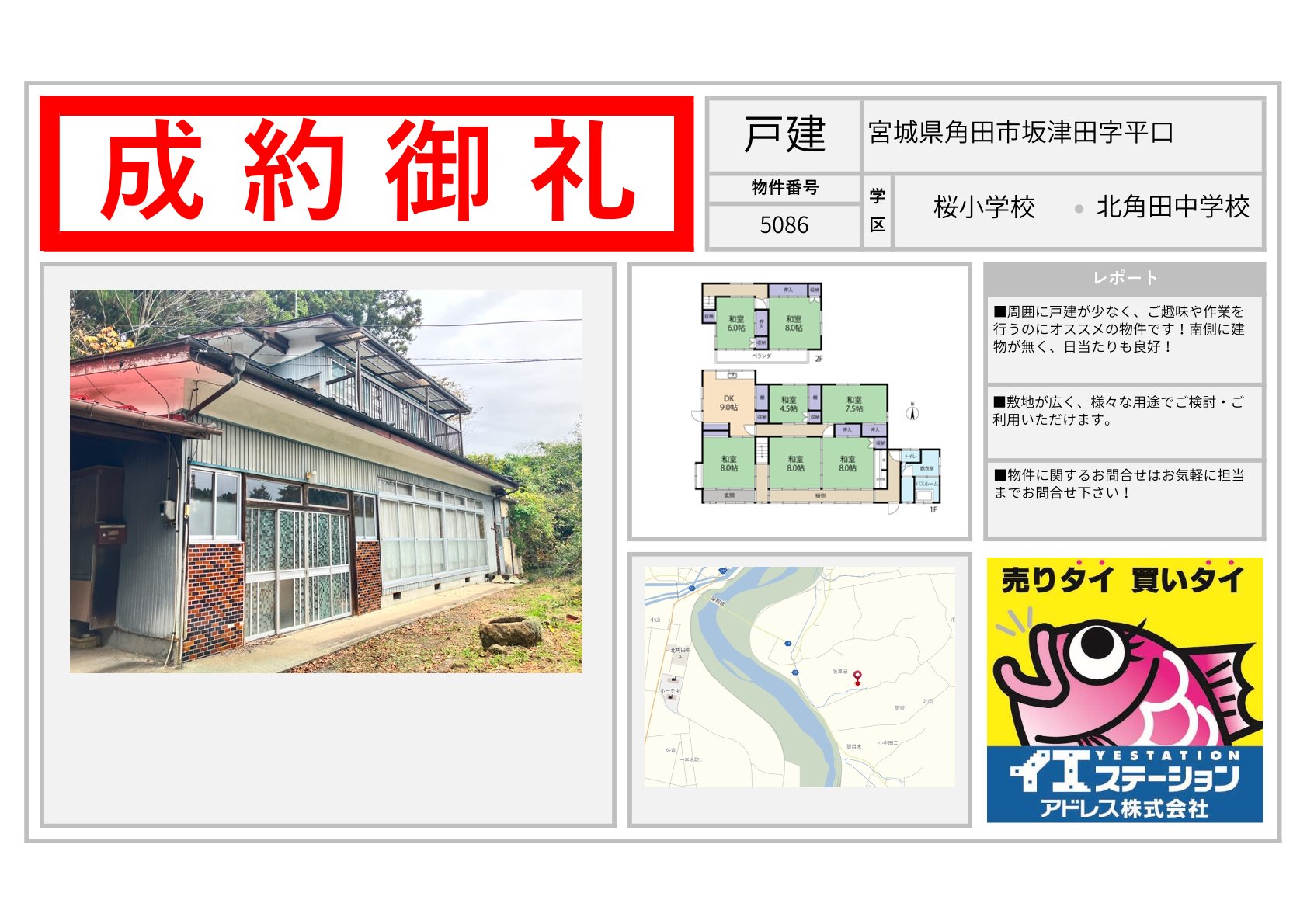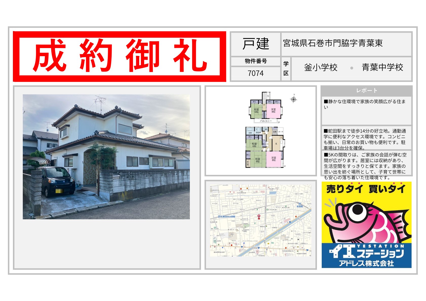 宮城県 | 不動産の売買ならイエステーションアドレス株式会社 エリアを選択 福島県 (1,109) いわき市 (582) 郡山市 (70) 田村市 (17) 田村郡 (27) 福島市 (48) 伊達市 (38) 伊達郡 (23) 二本松市 (46) 南相馬市 (52) 相馬市 (38) 会津若松市 (49) 喜多方市 (60) 耶麻郡 (17) 河沼郡 (14) 大沼郡 (5) 双葉郡 (4) 南会津郡 (1) 本宮市 (5) 相馬郡 (1) 宮城県 (712) 仙台市 (94) 名取市 (39) 岩沼市 (55) 白石市 (68) 角田市 (75) 柴田郡 (93) 亘理郡 (97) 伊具郡 (25) 塩竈市 (64) 宮城郡 (34) 東松島市 (9) 大崎市 (2) 富谷市 (3) 多賀城市 (7) 刈田郡 (11) 登米市 (1) 石巻市 (25) 遠田郡 (5) 気仙沼市 (1) 黒川郡 (1) 牡鹿郡 (1) 加美郡 (1) 茨城県 (206) 日立市 (69) 北茨城市 (40) 高萩市 (16) 那珂市 (17) ひたちなか市 (14) 常陸太田市 (31) 那珂郡 (4) 東茨城郡 (6) 常陸大宮市 (6) 山形県 (1) 山形市 (1) 2025年11月08日 宮城県宮城郡利府町春日字硯沢 2025年11月08日 宮城県名取市愛島台六丁目 2025年11月08日 宮城県角田市坂津田字平口 2025年11月08日 宮城県角田市岡字舘前 2025年11月08日 宮城県仙台市太白区緑ケ丘三丁目 2025年11月08日 宮城県白石市福岡深谷字沢 2025年11月08日 宮城県石巻市流留字町 2025年11月08日 宮城県白石市寿山 2025年11月08日 宮城県石巻市門脇字青葉東 2025年10月09日 宮城県仙台市太白区四郎丸字吹上 2025年10月09日 宮城県伊具郡丸森町小斎字八守 2025年10月09日 宮城県白石市字柳町 1 / 60123...» 福島県の成約事例宮城県の成約事例茨城県の成約事例山形県の成約事例