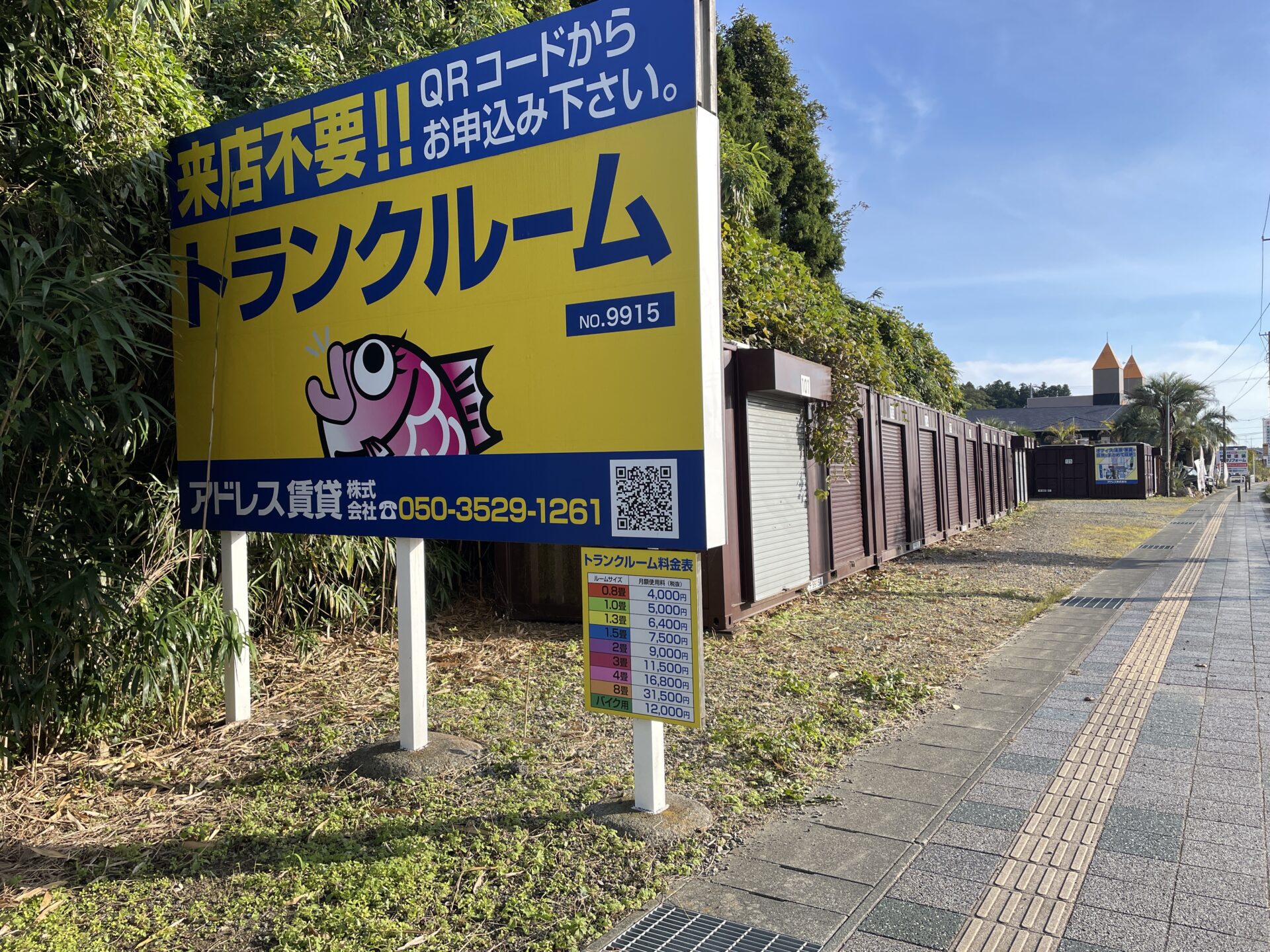 トランクルーム小名浜岡小名|不動産の売買ならイエステーションアドレス株式会社 施設名トランクルーム小名浜岡小名所在地福島県いわき市小名浜岡小名字御代坂11番2月額賃料8,250円〜初期費用の目安17,325円~使用日の目安即時~1週間更新料0円キャンペーン賃料3ヶ月フリーレントキャンペーン実施中物件番号9915 このトランクルームの 空き室を確認する 詳細を見る 部屋番号 広さ(畳) 月額利用料(税込) 幅×奥行×高さ(㎝) 114~123 1.50 8,250円 115×225×225 110~113/126(K)~129 2.00 9,900円 145×225×225 107~109 3.00 12,650円 190×225×225 101~106 4.00 18,480円 290×225×225 124・125 8.00 34,650円 230×225×225 タイヤもバイクも季節物も収納可能!即日契約OKのトランクルーム ◎24時間利用可◎即日契約可◎施設見学可◎カード決済可能 「アドレス賃貸株式会社」が運営する屋外型トランクルームとなります。重い荷物でもトランクルームの面前に車を止めて荷物の持ち運びができます。また24時間出し入れ自由のためお客様のご都合に合わせてご利用いただけます。 「タイヤやバイクが車庫に収まらない」 「衣類や季節の用品を置く場所が欲しい」 など、様々なお悩みを解決いたします。お気軽にお問合せ下さい。 トランクルームとは? トランクルームは、収納の悩みを⼿軽に解決してゆとりの快適⽣活を応援します。 あらゆる荷物を何とかしたい、もっと広々と快適に暮らしたい。そんな暮らしの声にこたえるのがトランクルームです。わが家のもうひとつの⾃由空間としてお気軽にご利⽤ください。 初めてご利⽤の⽅へ こんな⽅にトランクルームはおすすめ! オフィス‧店舗‧家庭の荷物をまとめて収納! 物が増えすぎて収納場所がない‧‧‧ ⾐類や季節の⽤品を置く場所が欲しい‧‧‧ 資材、道具置き場が欲しい‧‧‧ タイヤやバイクが⾞庫に収まらない‧‧‧ あらゆる荷物を何とかしたい。もっと広々と快適に暮らしたい。そんな暮らしの声にこたえるのがトランクルームです。わが家のもうひとつの⾃由空間としてお気軽にご利⽤ください。 利用料金 月々 4,320 円~ ⽤途に合わせて7タイプをご⽤意 広さ/価格 0.8畳/4,400円 幅×高さ×奥行き 110×225×100cm 広さ/価格 1.5畳/7,500円 幅×高さ×奥行き 115×225×225cm 広さ/価格 2畳/9,900円 幅×高さ×奥行き 145×225×225cm 広さ/価格 3畳/12,650円 幅×高さ×奥行き 190×225×225cm 広さ/価格 4畳/18,480円 幅×高さ×奥行き 290×225×225cm 広さ/価格 8畳/34,650円 幅×高さ×奥行き 230×225×580cm 広さ/価格 約2畳/13,200円 幅×高さ×奥行き 120×200×270cm 宮城県・福島県 その他の県 簡単4STEP トランクルームをご利⽤いただくまでの流れをご説明致します。 STEP01 適したトランクルームを探す STEP 02 お問い合わせ STEP 03 お申し込み&お⽀払い STEP 04 鍵番号の通知(契約完了) ご利⽤に適したトランクルームを探す 価格‧広さ‧住所から探せます あなたのご希望の地域を選択していただき、ご利⽤になりたいトランクルームを探してください。 \⾃分にあったトランクルームも⾒つかる!/ 宮城県・福島県 その他の県 STEP01 お問い合わせ トランクルームの詳細を確認します トランクルームについての詳細や、広さ、料⾦等、不明なところがございましたら、 お電話もしくはメールフォームから、お気軽にお問い合わせください。 専門スタッフに相談 STEP02 お申し込み&お⽀払い WEBから簡単にお申し込み可能 ご希望のトランクルームが⾒つかりましたら、ご契約へと進みます。 ご契約はWEBから簡単にお申し込み可能です。※個⼈のお客様は、運転免許証をご⽤意ください。※法⼈のお客様は、商業登記簿謄本をご⽤意ください。 専門スタッフに相談 STEP03 鍵番号の通知(契約完了) ご利用日の前に鍵番号を通知します 現地に付いてある南京錠の鍵番号を通知します。契約期間中は、お客様で用意した鍵を設置してご利用下さい。 専門スタッフに相談 STEP04