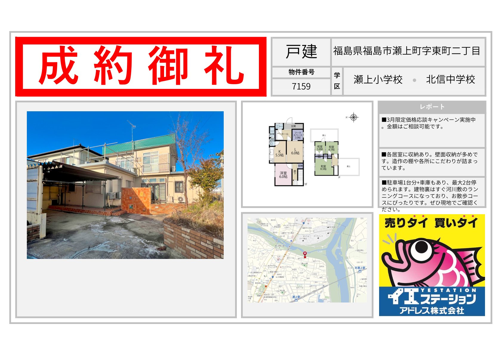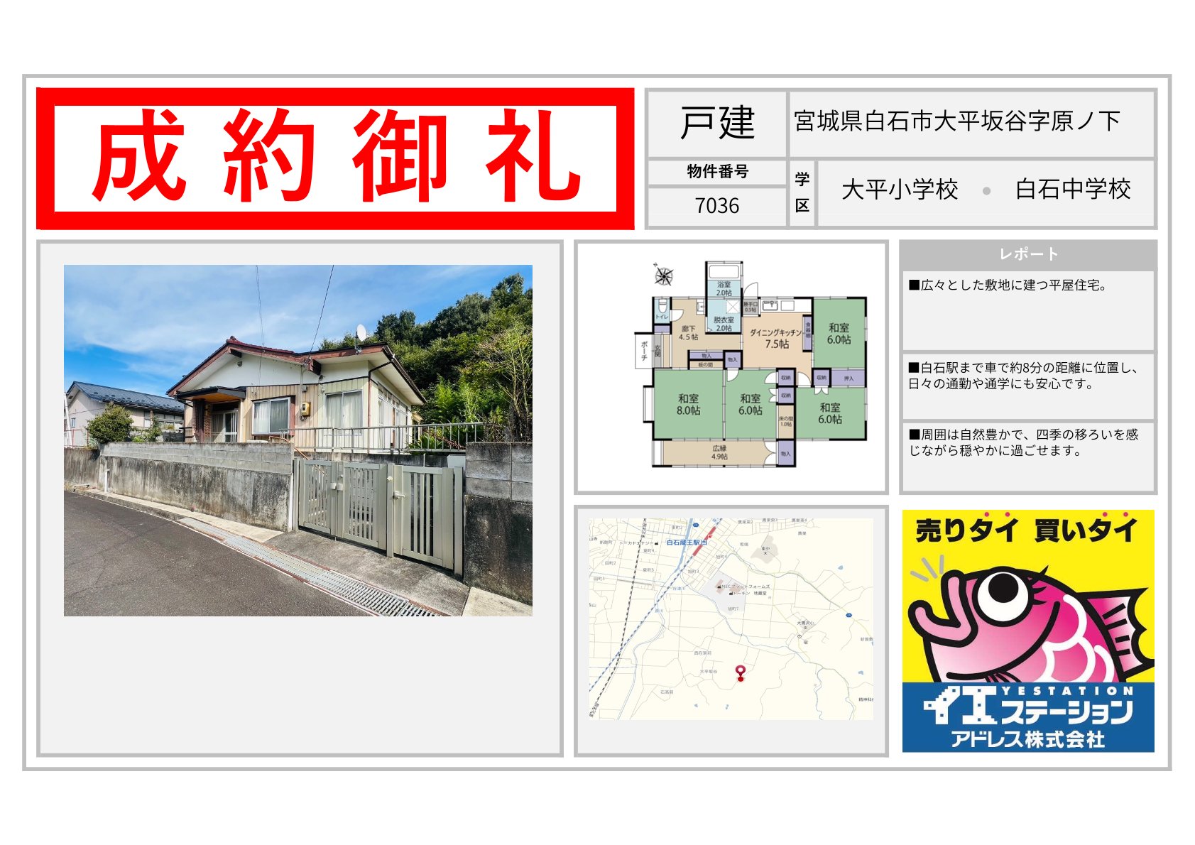 売買実績|不動産の売買ならイエステーションアドレス株式会社 福島県福島市南沢又字下並松の売買実績 掲載日:2026.04.09 物件番号 6971 物件種別 #戸建 エリア #福島市#福島県 学区 北沢又小学校・信陵中学校 物件レポート ■3月限定価格応談キャンペーン実施中。金額はご相談可能です。 ■上松川駅まで徒歩約4分とアクセス良好。通勤通学はもちろん、休日のお出かけにも便利な立地です。 ■7Kの間取りは大家族にもゆとりをもたらし、部屋数を活かして在宅ワークや趣味の部屋としても活用可能です。ゆったりとした住空間で、理想の生活スタイルが叶います。 同じエリアの売買事例 2026年04月09日掲載 福島県福島市瀬上町字東町二丁目 #福島市 #福島県 #戸建 2026年04月07日掲載 福島県福島市瀬上町字桜町三丁目 #福島市 #福島県 #戸建 2026年03月07日掲載 福島県福島市森合字南戸ノ内 #福島市 #福島県 #土地 福島市の売買事例一覧 同じ物件タイプの売買事例 2026年04月09日掲載 茨城県北茨城市磯原町上相田 #北茨城市 #茨城県 #戸建 2026年04月09日掲載 茨城県日立市東成沢町一丁目 #日立市 #茨城県 #戸建 2026年04月09日掲載 宮城県白石市大平坂谷字原ノ下 #宮城県 #白石市 #戸建 戸建の売買事例一覧 エリア別の実績 宮城県 亘理郡 仙台市 伊具郡 刈田郡 加美郡 名取市 塩竈市 多賀城市 大崎市 宮城郡 富谷市 岩沼市 東松島市 柴田郡 気仙沼市 牡鹿郡 登米市 白石市 石巻市 角田市 遠田郡 黒川郡 山形県 山形市 福島県 いわき市 二本松市 伊達市 伊達郡 会津若松市 南会津郡 南相馬市 双葉郡 喜多方市 大沼郡 本宮市 河沼郡 田村市 田村郡 相馬市 相馬郡 福島市 耶麻郡 郡山市 須賀川市 茨城県 ひたちなか市 北茨城市 常陸大宮市 常陸太田市 日立市 東茨城郡 那珂市 那珂郡 高萩市 種別ごとの実績 マンション 事業用建物(全部) 収益物件(一部) 収益物件(全部) 土地 戸建 ご相談・お問い合わせ 店舗一覧 AI簡易査定